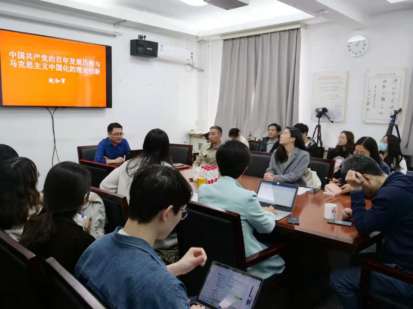 4月7日下午,必赢bwin线路检测中心邀请祝和军为党员师生上了一堂题为《中国共产党的百年发展历程与马克思主义中国化的理论创新》专题党课。刘厚广主持学习活动,林温霜、董希骁和40多名师生参加学习。以本专题为开端,必赢bwin线路检测中心贯彻党史学习教育推进会精神集中学习活动正式启动,本学期将陆续组织集中学习,将党史学习教育活动推向深入。