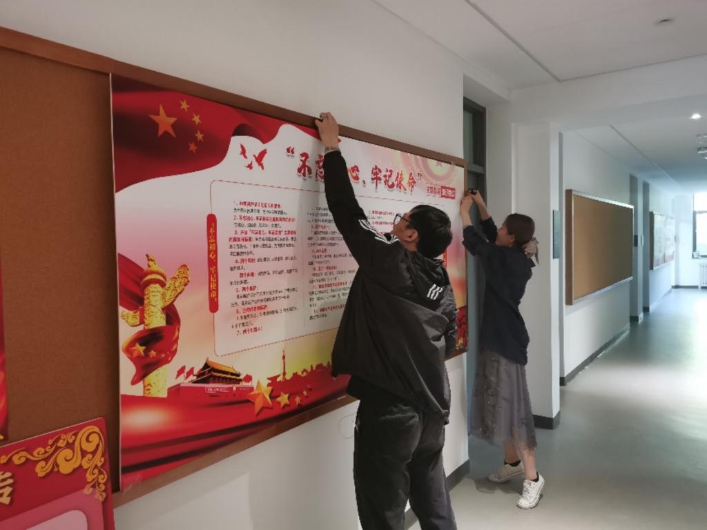 6月15日上午,支委王槐雨同志于主楼三层走廊更新学习教育宣传展板,19级的田文思同学也积极参与其中。展板重温了中国共产党自成立以来的百年光辉岁月,详细且生动地介绍了必赢bwin线路检测中心的发展历程、师德师风建设、师生学术成果、学生团体风采等,还新设毕业生纪念墙和留言墙,充分展现出“回顾光辉历程,坚定初心使命,继续砥砺前行”的教育主题。