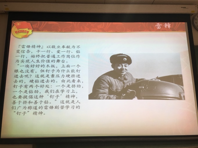在本次主题团日活动中,各班团支部组织进行了雷锋精神阐释、雷锋事迹重温、雷锋精神讲述等多形式、大范围、广深度的活动。立足实践,充分结合了大学生实际情况,从学习、生活点滴入手,由点及面、由表及里、由浅入深地宣传了“爱憎分明的阶级立场、言行一致的革命精神、公而忘私的共产主义风格、奋不顾身的无产阶级斗志”的雷锋精神。作为当代大学生,我们定会脚踏实地,仰望星空,在今后的日常生活中贯彻雷锋精神,践行社会主义核心价值观,自觉履行义务,争做时代先锋。