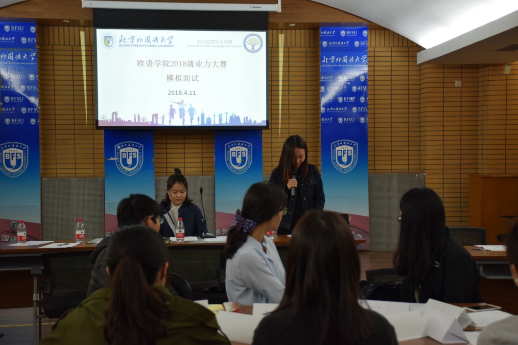 在单面环节,参赛选手根据自己的经历,进行限时自我介绍,同时回答面试官的提问。在此过程中,面试官根据参赛选手的表现提出具有个性化的指导建议,同时指出参赛者的优点与不足。在单面过程中,参赛选手充分展现了欧语学子积极向上的良好风貌,受到了在座评委的充分肯定和赞赏。同学们在老师的点评和建议里第一次从面试官的角度审视自己的表现,受益匪浅,也更加懂得了如何在今后有的放矢,提高自身综合素质。