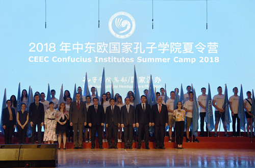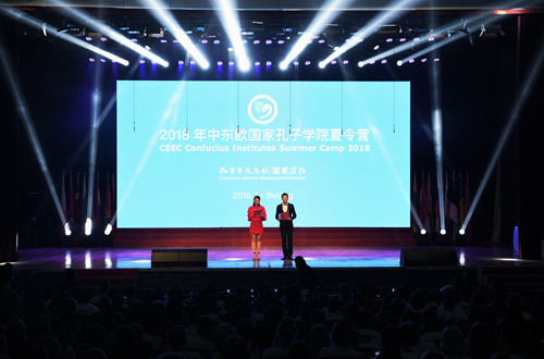 我校承办的阿尔巴尼亚地拉那大学孔子学院、波兰克拉科夫孔子学院匈牙利罗兰大学孔子学院和保加利亚索非亚孔子学院师生共128人参加了“2018年中东欧国家孔子学院夏令营”开营仪式。他们还将在未来的两周参加由我校精心设计和组织的各项活动。