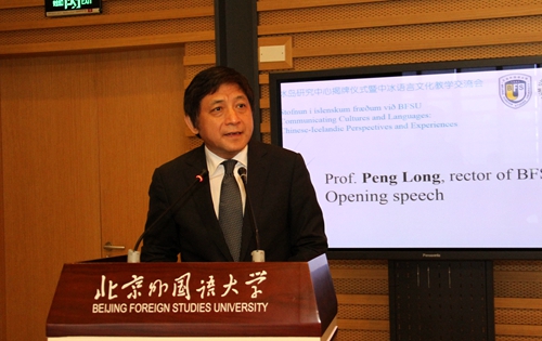 开幕式上,彭龙介绍了北外非通用语种专业的建设情况和发展规划,回顾了冰岛语专业的建设历程,总结了我校与冰岛大学的友好往来,特别强调国别与区域研究工作的重要性,为冰岛研究中心建设发展指明了方向。