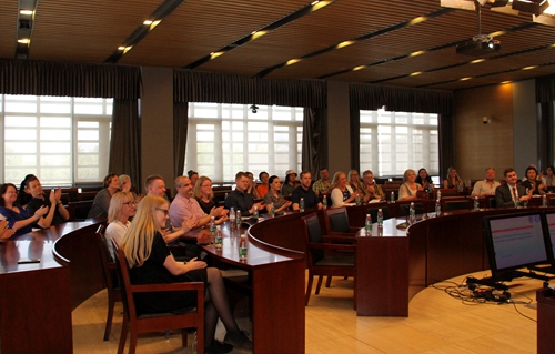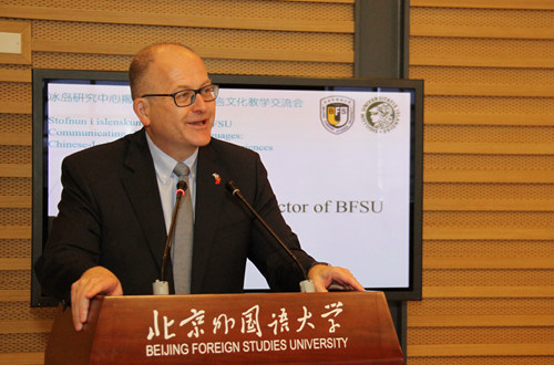 当天下午,冰岛研究中心举行了第一次学术活动:“语言与文化交流:中冰视角与经验”教学交流研讨会。在“冰岛语教学和冰岛研究”的研讨环节,冰岛大学多位冰岛语教师与我校冰岛语教师王书慧、外籍专家 Eiríkur分别就冰岛语教学和文化传播问题展开发言和交流。在多语种平行讨论环节,冰岛大学的英语、西班牙语、法语、俄语、日本民俗、丹麦语、拉丁语、汉学教师分别就教学中的语言学问题、文学教材选编、文化差异处理、学生文化接受、教学法问题等发表见解。作为回应,我校文秋芳教授以“产出导向教学法”为题,张建华教授以“中国高校俄语文学教学的经验和问题”题,展示了我校教师的深厚语言功底和专业水平,国际关系学院东西方关系中心主任田辰山以“说文解字”的方式,解读汉语背后隐匿的东方哲学,让在座的冰岛学者痴迷。拉丁语教师麦克雷、丹麦语教师王宇辰介绍了我校的拉丁语和丹麦语教学情况,展示了多语种的教学科研实力。
