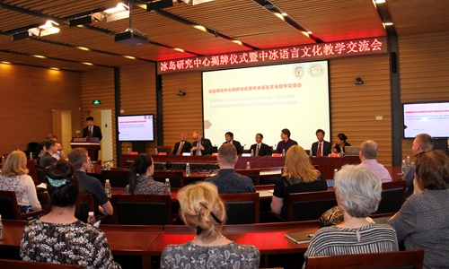 6月4日上午,教育部国别和区域研究备案中心北京外国语大学冰岛研究中心揭牌仪式在图书馆举行。校长彭龙,冰岛驻华大使古士贤,中国驻冰岛前大使王荣华、张卫东出席成立仪式,冰岛大学多语种教师代表团的20多位专家学者参加了开幕式和中冰语言文化教学研讨会。