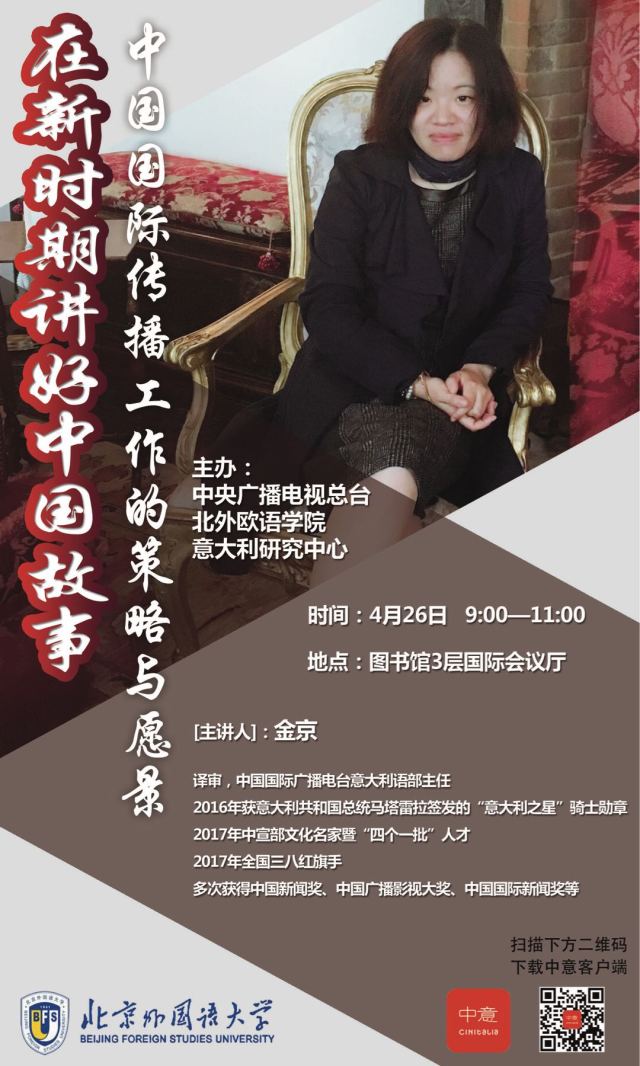 4月26日上午,由中央广播电视总台(中国国际广播电台西拉中心意大利语部)、北京外国语大学必赢bwin线路检测中心、意大利研究中心主办的“在新时期讲好中国故事—-国际传播工作的策略与展望”主题讲座在北京外国语大学国际会议厅举行,近百位师生参加活动。