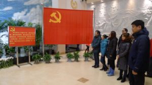 走进纪念馆瞻仰厅,迎面是周恩来、邓颖超的汉白玉雕像,雕像前有一面巨大的党旗。老师们站在党旗前,重温入党誓词。大家都认为,党的十九大刚刚胜利闭幕,中国特色社会主义进入了新时代,我国社会主要矛盾转化为人民日益增长的美好生活需要和不平衡不充分的发展之间的矛盾。身为党员、身为高等教育工作者,我们要不忘初心、牢记使命,认识到我们所肩负的社会责任是什么;要砥砺奋进,在教学、科研、社会服务岗位上做出更大成绩,为解决新时代高等教育领域面临的新矛盾、新问题做出自己的贡献。