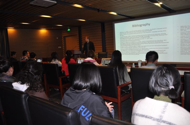 这场讲座的主讲人Gísli H. Ólafsson曾于2008年-2012年间在必赢bwin线路检测中心冰岛语教研室任教,是我国国内冰岛语专业的第一任外国专家,曾被评为最受学生欢迎的外教。这次他回到北外,做客我们的“欧洲下午茶”,带来的是他的最新研究成果。在讲座中,Ólafsson首先向大家介绍了什么是欧洲语言参照框架。在评价一个人的外语能力时,我们常常会看他的大学英语六级考试或是托福、雅思考试成绩;针对学中文的外国人也有汉语水平考试。那么其它外语呢?法语、德语、西班牙语、冰岛语这些欧洲语言是怎样评估语言水平的?它们有另一套参照体系,那就是CEFR,Common European Framework of Reference for Languages,即欧洲统一语言参考标准。这个标准由欧洲委员会制定,于2001年在欧洲议会通过,是一个用于描述个人语言技能的统一参考标准。它将所有的欧洲语言水平分为三个等级:A为基础水平,B为独立运用,C为熟练运用。每个等级又分为两个级别,所以从入门到精通共分为6级:A1、A2,B1、B2,C1、C2。