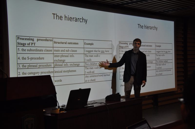 Gísli的研究聚焦在这个体系对语法的描述上。他给大家分析了这个体系存在的问题。首先,通过对比英语和西班牙语A1水平的一系列具体语法内容可以明显看出,虽然是同一水平,但不同语言根据其自身的特征,要求学习者掌握的要点不尽相同,因此即便是同一个参照框架下的同一个水平等级,不同语言仍然会有难易的差别。其次,在一门特定的语言中,对同一个等级的解读也不尽一致,导致参照这一标准制定的教材也有很大差异,这一点在冰岛语教材上体现得非常明显。