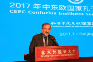 7月18日,“2017年中东欧国家孔子学院夏令营”开营仪式在我校举行。本次活动由国家汉办/孔子学院总部主办,国内21所高校承办,共邀请16国孔子学院的821名大中小学生来华访问。国家汉办党委书记、副主任马箭飞、我校党委书记韩震以及12个中东欧国家的驻华使节、部分中方高校代表出席开营仪式。