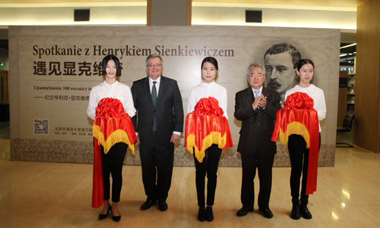 科莫罗夫斯基此次访华是应中国人民外交学会的邀请,将参访多个省市。在访华的第一天,科莫罗夫斯基来到我校,出席了我校波兰研究中心主办的“遇见显克维奇——纪念亨利克•显克维奇逝世100周年及其作品在中国被译介110周年专题展”,并与我校党委书记韩震为展览剪彩。
