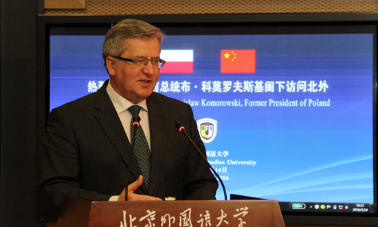 3月14日下午,波兰共和国前总统布罗尼斯瓦夫•科莫罗夫斯基访问我校,出席“遇见显克维奇——纪念亨利克•显克维奇逝世100周年及其作品在中国被译介110周年专题展”开幕式,并发表了题为“欧洲和波兰眼中的中国——当前和未来”的演讲。