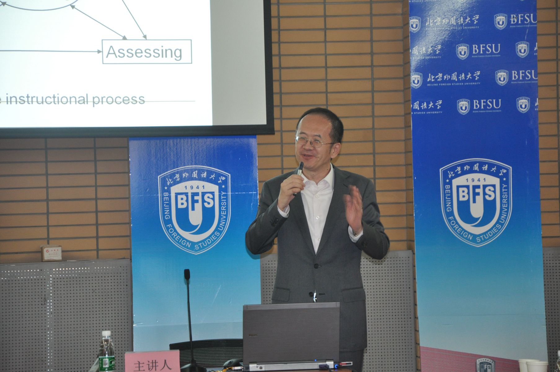 杨鲁新教授在大会上做了题为“有效外语教学理念与方法”报告。她阐述了教师语言观对学生的重要影响作用,提出教师一定要树立正确的语言观;在教学过程中,教师应根据教学需求,灵活选取有效的教学方法,避免对零起点成年学生进行“低龄化”方式教学。此外,她还强调在选取教学材料时要精心筛选,注重知识的复现。