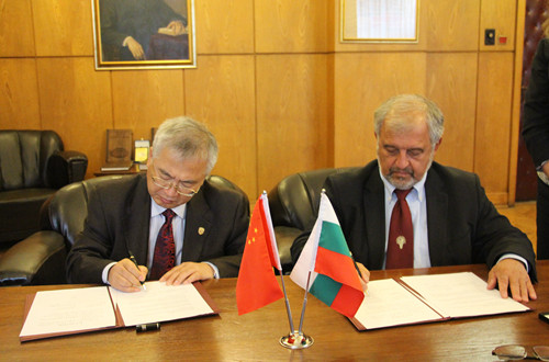 随后,韩震与伊万•伊尔切夫签署了《北京外国语大学与保加利亚索非亚大学合作交流谅解备忘录》,双方就师生交流、科研合作、资源共享等达成合作共识。