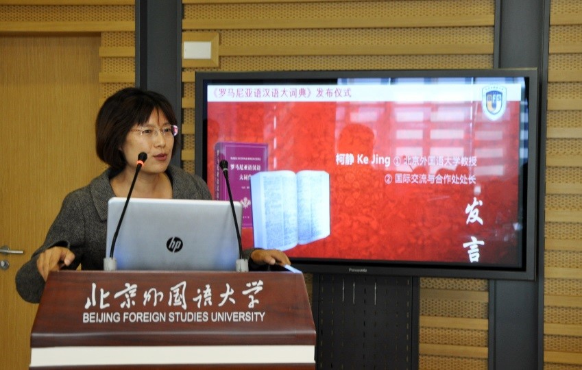 10月24日下午,《罗马尼亚语汉语大词典》在北京外国语大学图书馆学术报告厅隆重举行。北京外国语大学副校长贾德忠研究员、商务印书馆外语编辑室主任郭可、北京罗马尼亚文化中心主任鲁博安(Constantin Lupeanu)、北外罗马尼亚语专业历届校友,以及来自外交部、文化部、中国国际广播电台、北京第二外国语学院、天津外国语大学的代表出席了此次活动。