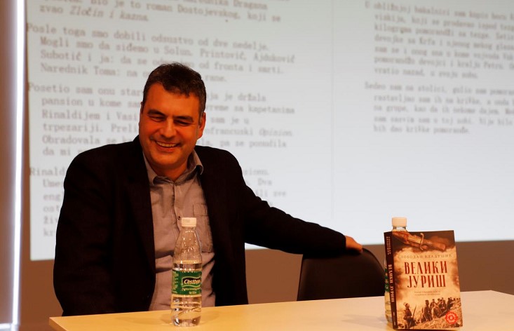 2018年,弗拉杜什奇的第三本小说《大冲锋》面世,获得读者和评论家的一致好评。这一部小说讲述的是塞尔维亚士兵在第一次世界大战当中的故事。今年是第一次世界大战结束100周年,这本书在这样的时刻到了,具有非常重要的意义。在文学沙龙上,作家弗拉杜什奇夫妇和北外塞语专业教师分别朗读了《大冲锋》中的五个精彩选段,为现场的读者们带来了身临其境的文学体验,同时也让读者对塞尔维亚在一战期间的历史、塞尔维亚民族对一战的集体记忆与感情,有进一步的认知。本次读书会是第一次世界大战停战百年纪念活动中的一项重要内容。