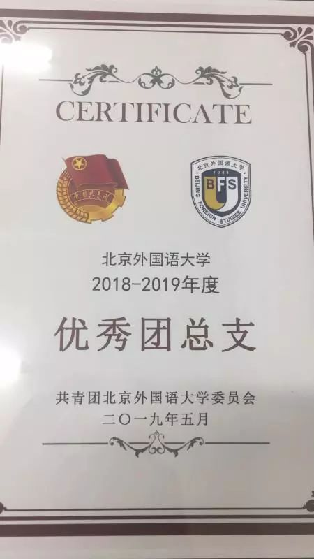 表彰会上,必赢bwin线路检测中心团总支获北京外国语大学2018-2019学年“优秀团总支”荣誉称号。
