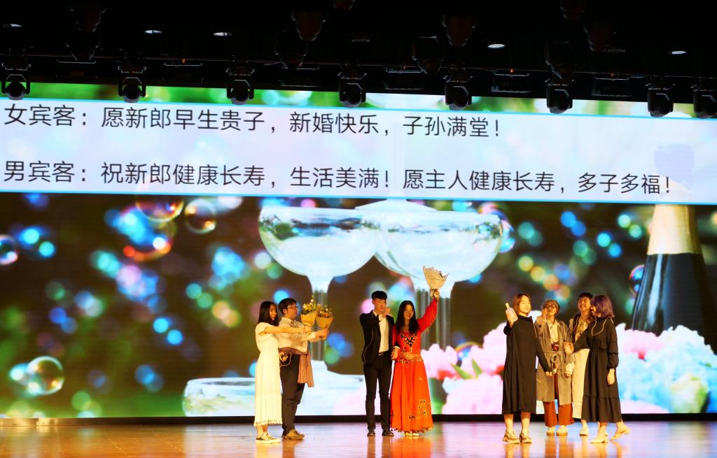 大赛在阿尔巴尼亚语班带来的《十四岁新郎》中拉开序幕。该剧是阿尔巴尼亚著名喜剧大师安东·恰佑比的经典剧目之一,情节滑稽可笑又令人心酸。阿尔巴尼亚语同学采用了反串的表演形式,在短短的表演中让人物形象立体丰满起来,引得阵阵笑声与掌声。