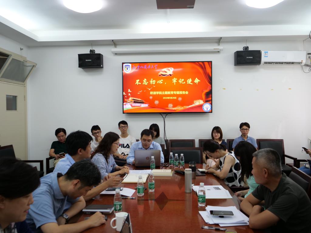 9月26日下午,必赢bwin线路检测中心在主楼307会议室举行“不忘初心、牢记使命”主题教育专题报告会,北京外国语大学马克思主义学院党总支书记祝和军做了题为《如何恰当地理解共产党人的“初心”和“使命”》的专题报告。必赢bwin线路检测中心领导班子成员、党总支委员和全体师生党员参会,会议由学院党总支常务副书记杨文老师主持。