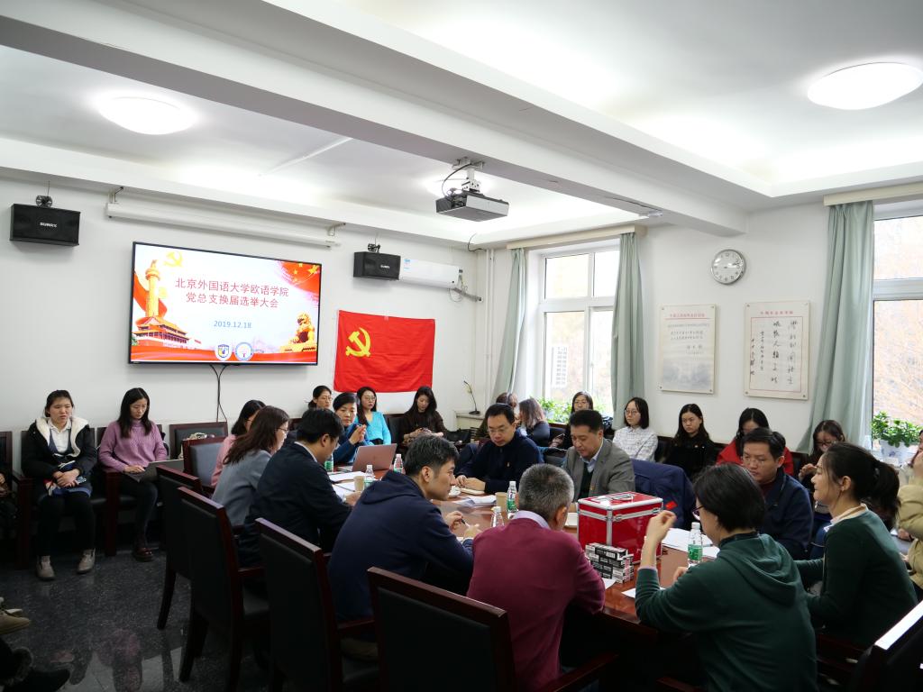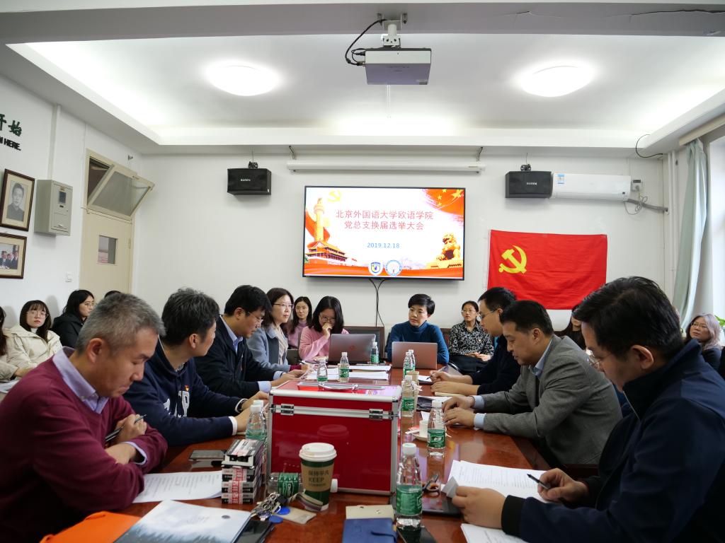 北京外国语大学党委副书记、纪委书记胡志钢同志和校党委宣传部彭澍同志出席会议,指导选举工作。教工党支部与学生党支部共38名正式党员参会。会议由赵刚院长主持。
