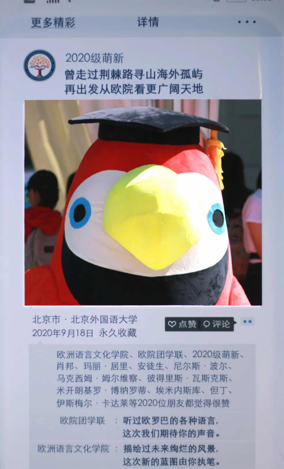 2020级萌新们的加入让必赢bwin线路检测中心充满了新的青春活力和朝气,希望2020级新生能够不忘初心,砥砺前行,在语言学习中有新的收获,在必赢bwin线路检测中心开启精彩的大学生活,在北外奏响新的青春乐章。