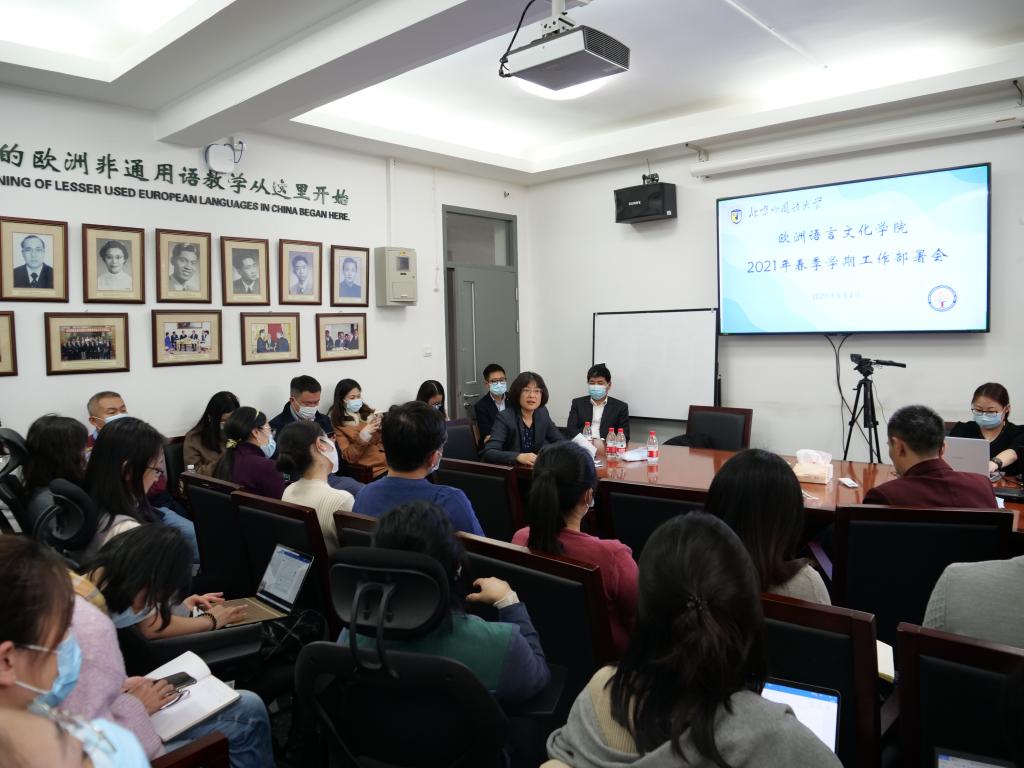 柯静院长深入分析了必赢bwin线路检测中心师资队伍建设现状,总结了本科及研究生教学、科研学术活动、国际交流与合作等方面的经验成果和面临的困难问题。柯静院长动员全院教师积极推进“一流”学科建设,高度重视国家级一流课程建设,优化高水平复合型人才培养机制,进一步修订本科生和研究生培养方案,依托中东欧研究中心平台和国别区域研究基地,扎实完成教学和科研计划。柯静院长指出,今年是建党100周年和校庆80周年,也是必赢bwin线路检测中心部分语种创建的整数纪年,有关语种依托自身建设情况,要将总结庆祝活动融入建党百年和校庆活动之中。