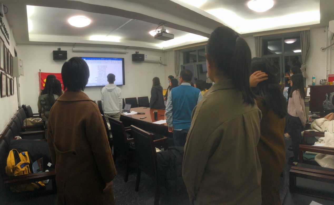 会议的第一项议程为讨论接收陈习习等5名发展对象为预备党员。每位同志依次向支部汇报了自己对党的认识、入党动机、个人及家庭主要成员情况等,表达了自己的入党志愿。随后,第一介绍人和第二介绍人分别就发展对象的基本情况提出推荐意见,徐台杰同志代表支委向大会汇报支部审查情况。随后,与会的正式党员进行了无记名投票,未到场党员以书面形式表明意见,大会一致同意接收陈习习、成静宇、袁茵、尹家玥、李思睿5名同学为预备党员。
