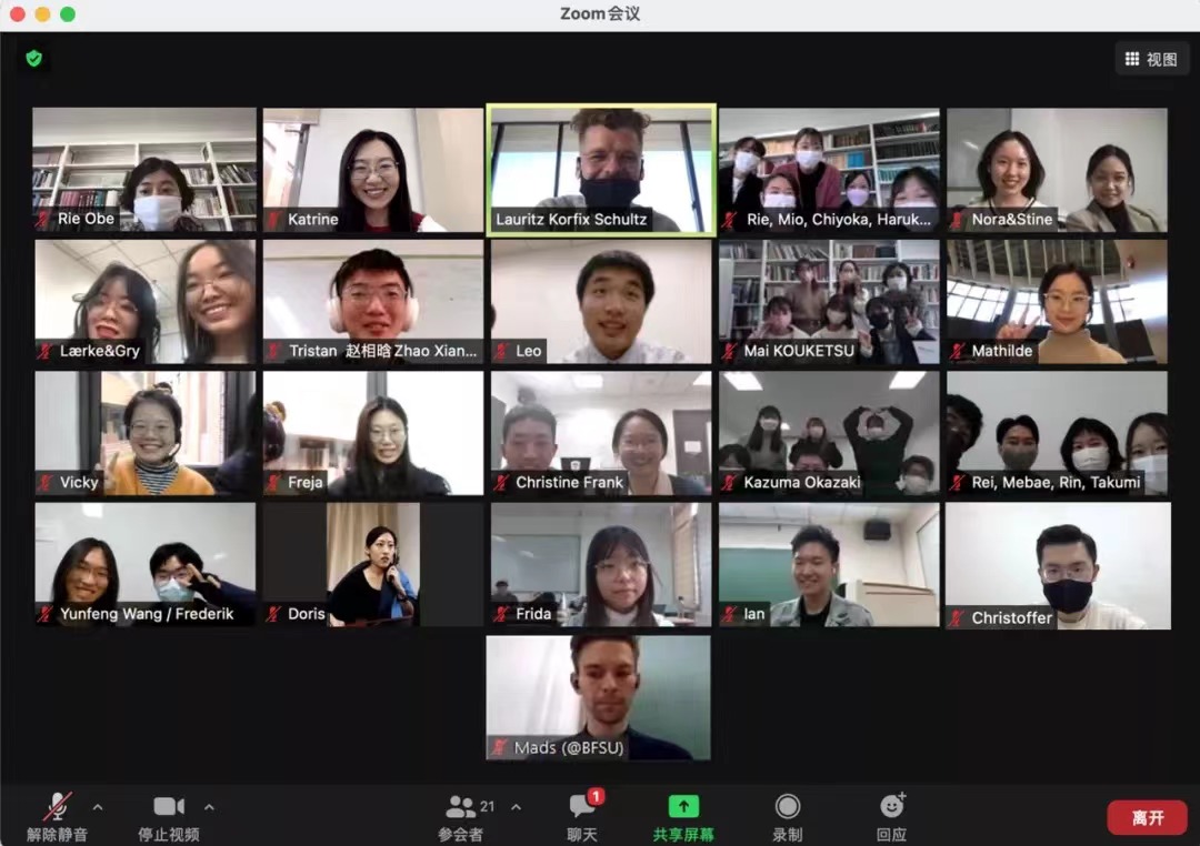 2021年11月24日,必赢bwin线路检测中心与大阪大学外国语学院的丹麦语师生通过线上视频会议举行了跨国见面会。