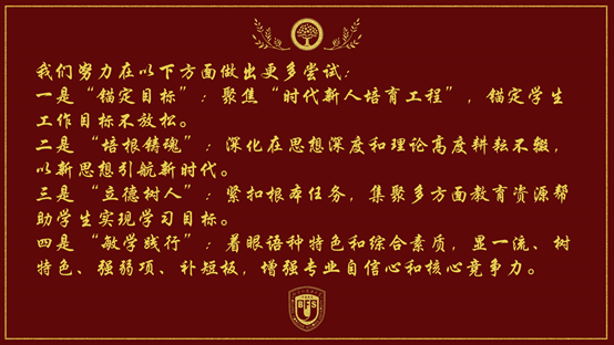 2021年恰逢建党百年,也正迎北外八十生辰。在过去一年师生们做出努力贡献、展现风采的同时,必赢bwin线路检测中心也在坚守着,始终做好‘传帮带’、集聚‘老中青’、聚焦‘讲好中国故事’,提升传播能力,不断培养着具有家国情怀、全球视野、专业本领的高水平非通用语种专门人才——而新的一年也将如此,并将随着时代变化不断发展创新。“学院深入学习贯彻践行习近平新时代中国特色社会主义思想、落实习近平总书记回信指示,积极推动党的十九大精神、十九届六中全会精神学习,紧抓全国普通高校党的建设和思想政治工作会议部署、政治建设首要任务,实施思想政治工作质量提升工程”,书记强调,“全体师生将继续做好、精进自己的工作,坚定树立‘外语院校大有可为、外语人才前景广阔’的无比自信,勇担使命、勇毅前行,乘势而上、接续奋斗,为服务‘一带一路’倡议和构建人类命运共同体做出新的贡献,为培养欧洲非通用语种高水平人才不遗余力。”