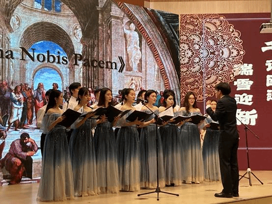 “心神无俗累,歌咏有新声”。接着是必赢bwin线路检测中心合唱团为大家带来的多曲目合唱《De Zilvervloot》《茉莉花》《De Tempestate》《Dona Nobis Pacem》,气息绵远、共鸣和谐,协调一致、富于变化,牵动着观众的情感。中国民谣的清新、外国歌曲的典雅在合唱中展现的淋漓尽致。观众们沉浸在声部起伏中,如闻空谷兰香,回味良久。