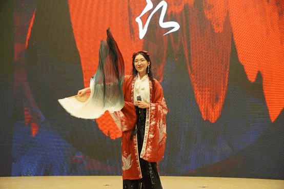 赏完梨园雅韵,再品古风歌曲。刘雨霏同学的一曲《红昭愿》,华服秀美,佳人翩然。歌声低徊婉转,舞姿婀娜曼妙。间舞间唱,一展风华。