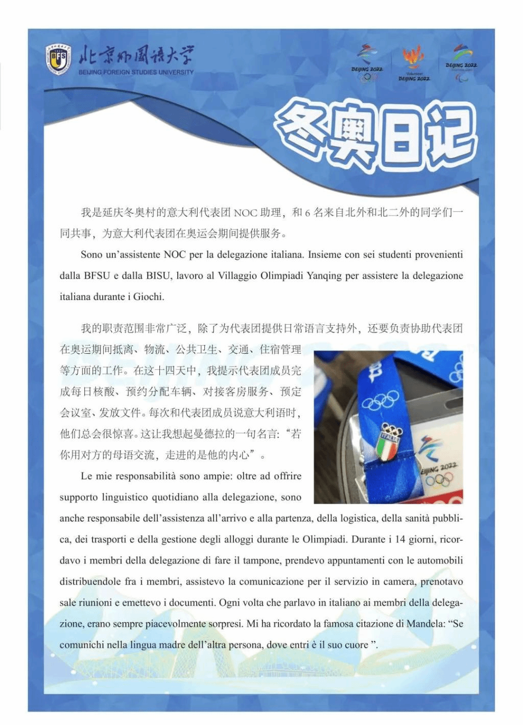 欧语人在冬奥 | 延庆冬奥村NOC助理操兰漪冬奥日记: 冬奥盛会中的一片小小雪花