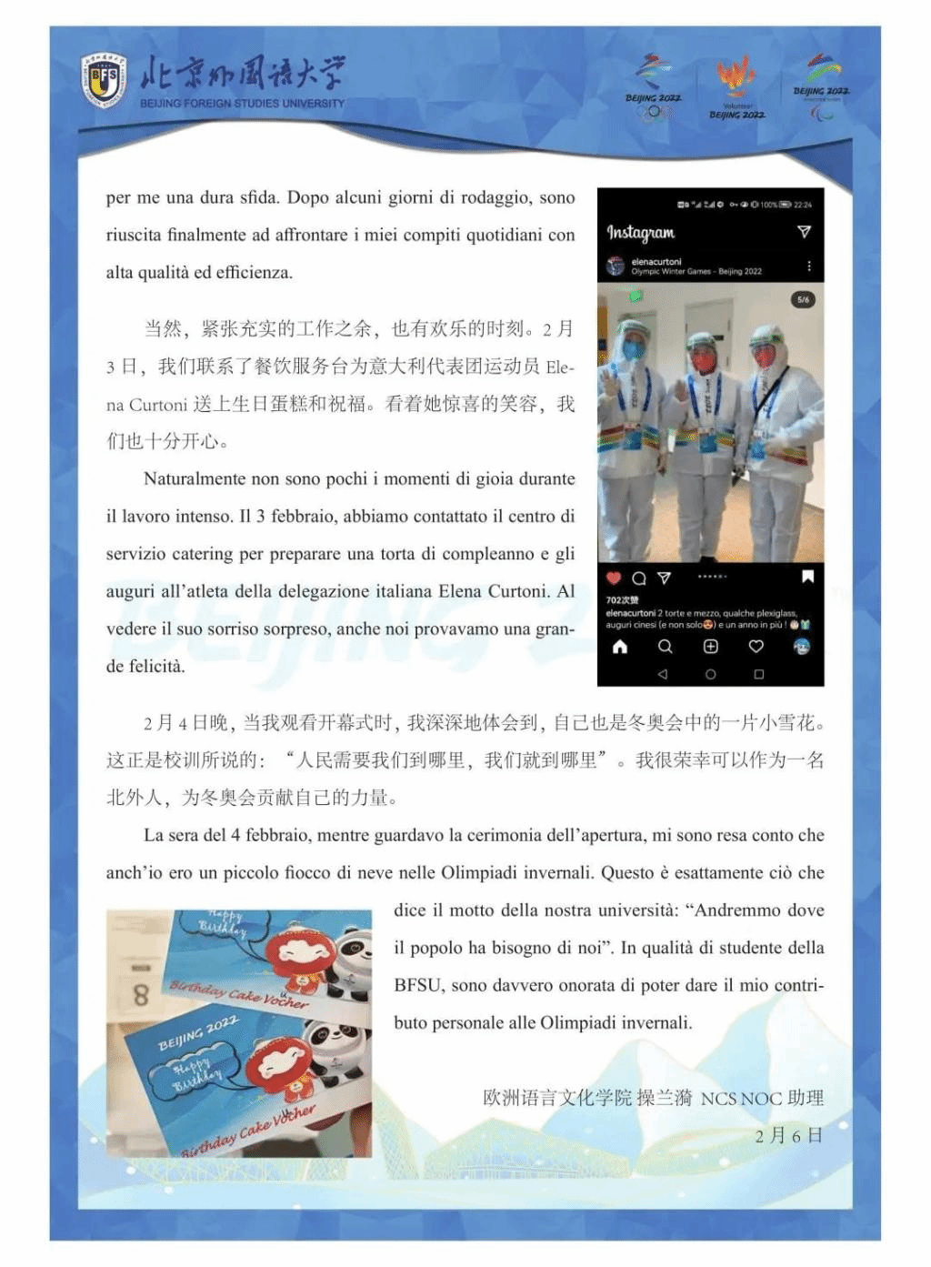 欧语人在冬奥 | 延庆冬奥村NOC助理操兰漪冬奥日记: 冬奥盛会中的一片小小雪花