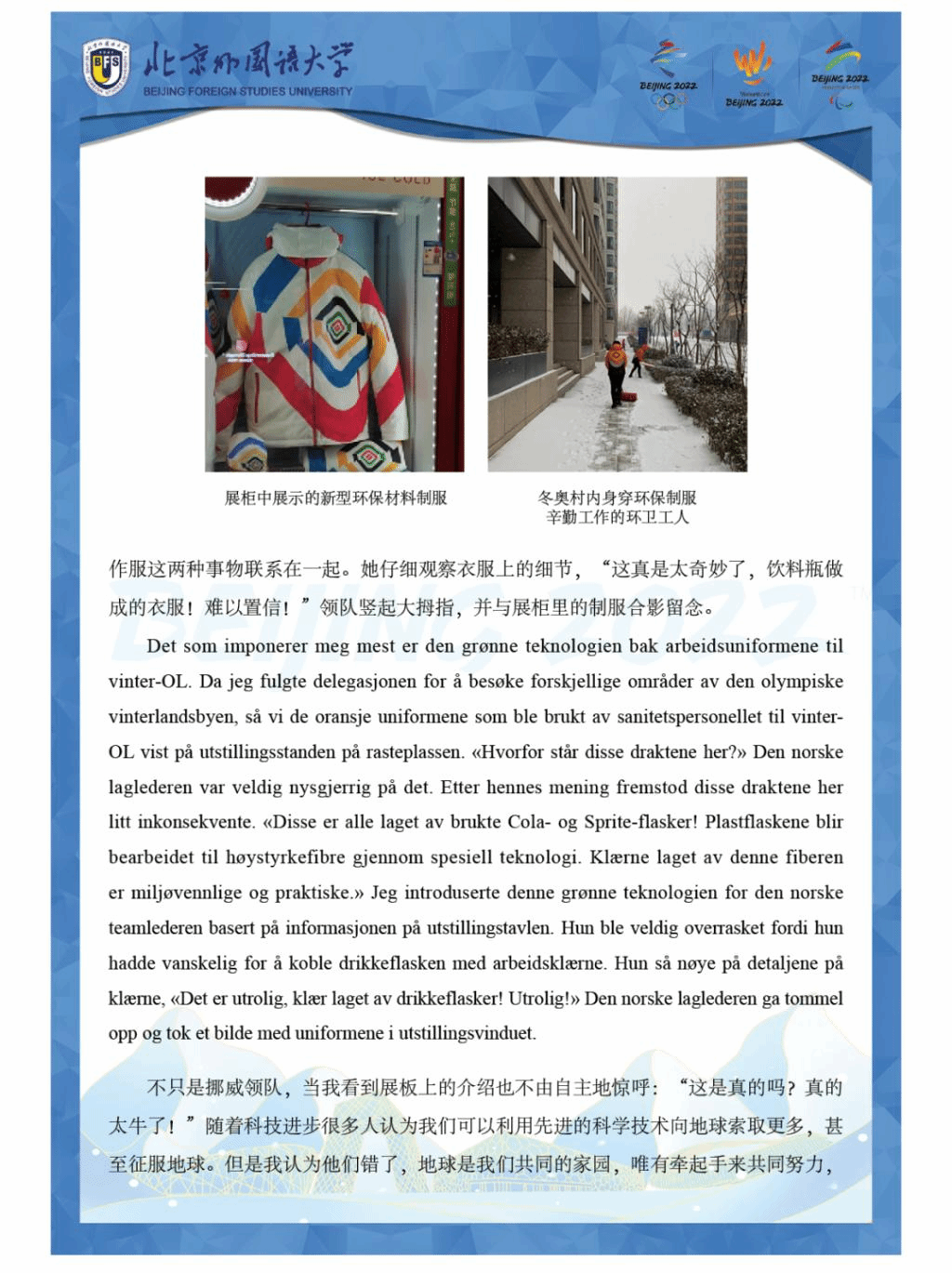 欧语人在冬奥|北京冬奥村志愿者任梓彰日记:北京冬奥会——绿色、清洁的伟大盛会