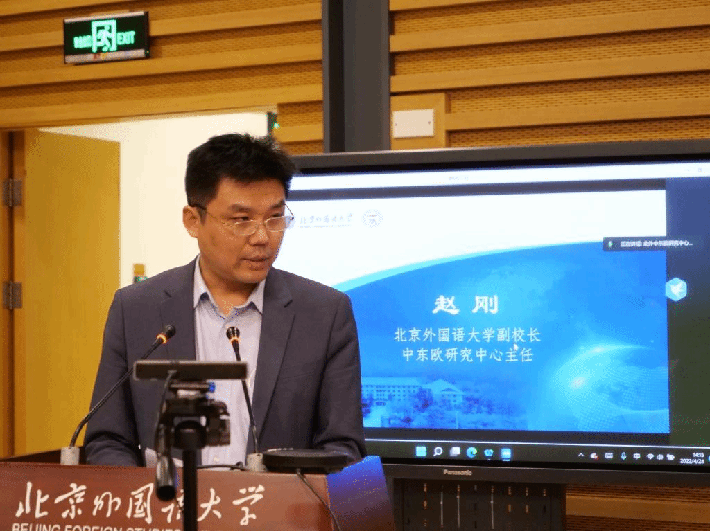 北京外国语大学副校长、中东欧研究中心主任赵刚教授出席会议并致辞。他首先对与会者表示诚挚的问候与热烈的欢迎。他指出,在当今时代不确定因素持续叠加的背景下,加强对世界各国和各重要地区的国别区域研究,加深对国际形势演化的内在逻辑和客观规律的把握,对于中华民族的伟大复兴和人类命运共同体的构建都具有十分重要的意义。近年来,国内中东欧语言人才和中东欧区域研究人才的培养都取得了令人瞩目的进展。北外的相关人才培养也应再迈上一个新的台阶。