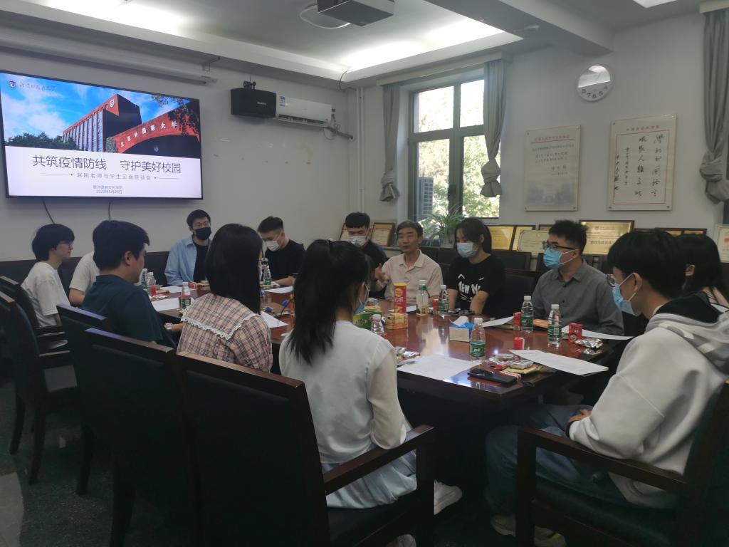 学生党支部书记潘晨、团学联负责人阮思潼、捷克语21级学生张斯淇、瑞典语21级高博文等同学座谈发言。他们高度评奖学校疫情防控科学、精准、人性化的政策举措。同学们说,学校工作部署“稳”字当头,有序推进,切合实际,回应医食住行等学生关切,注重工作方式,提高服务效能,有序开展线上教学,同学们积极配合工作,开展形式多样活动,适应教学方式调整,保证学习质量,全校师生共同努力,正在赢得这场疫情防控攻坚战。