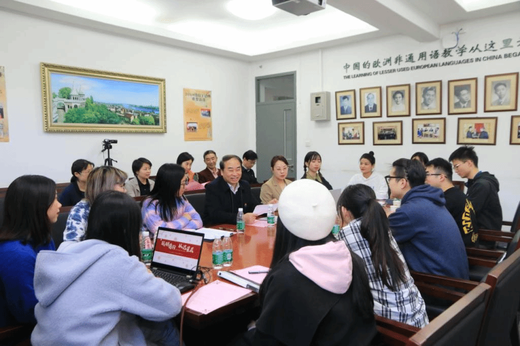 王定华书记高度肯定了拉丁语班的建设成果,对拉丁语班的同学们表达赞赏,再度强调了非通用语种建设的战略意义与发展规划,鼓励同学们坚持学术道路,投身于拉丁语语言文化学术研究,成为既勤于思考,又善于实践的人才。