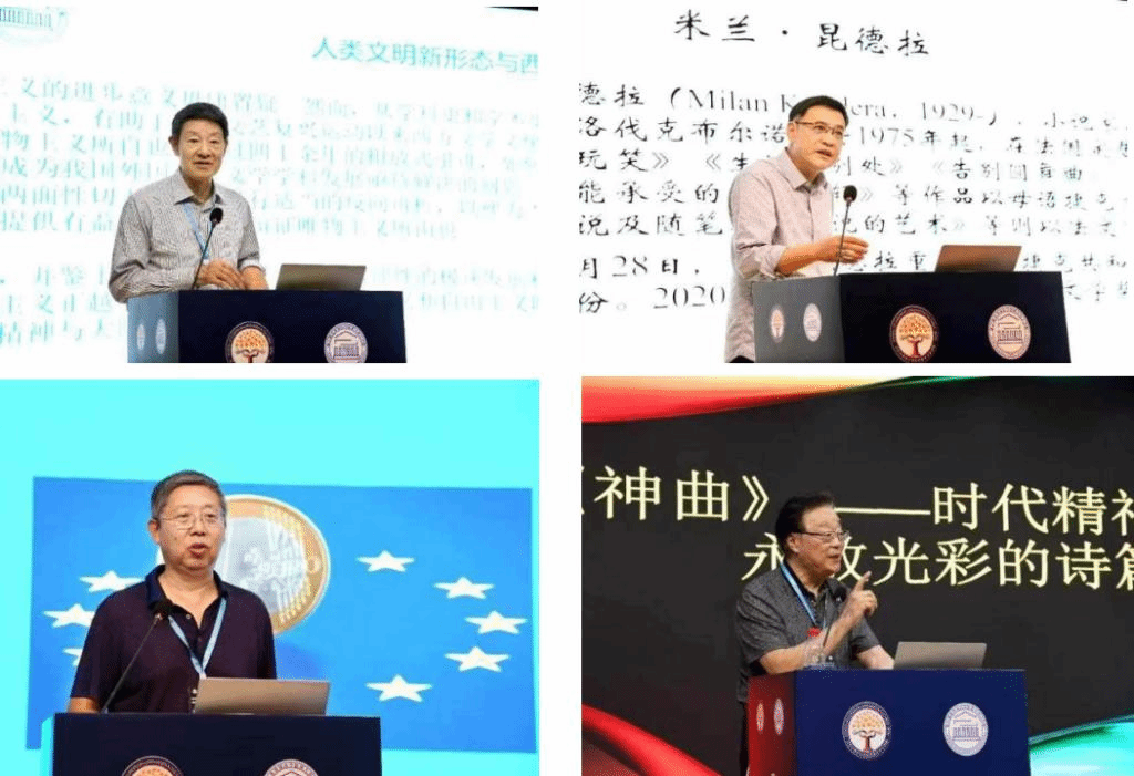 中国社会科学院学部委员陈众议教授应邀作主旨报告,中国社会科学院欧洲研究所研究员孔田平、越秀外国语学院西方语言学院院长杨令飞教授、北京外国语大学王军教授分别作主旨发言。四位专家围绕“人类文明新形态与西方人文主义问题”“冷战后中东欧国家国际地位的变化”“昆德拉小说中‘自由’与‘死亡’的辩证关系”“《神曲》——时代精神的杰作,永放光彩的诗篇”等主题展开精彩论述。