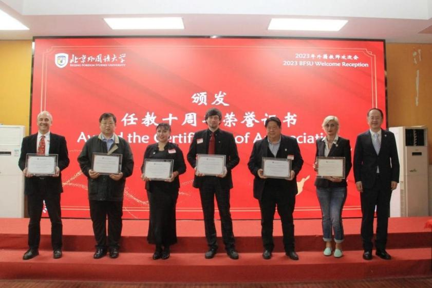 新入职外籍教师代表分享了他们的教学经验和感受,贾文键副校长为任教10周年的外籍教师颁发了荣誉证书。必赢bwin线路检测中心波兰语教师Andrzej Czesław Ruszer、塞尔维亚语教师Natasa Radosavljevic-Gaberova、立陶宛语教师Rokas Liutkevcius、保加利亚语教师Atanasova Lyuba Petrova、罗马尼亚语教师Petru Apachitei 6位外籍专家获此荣誉。