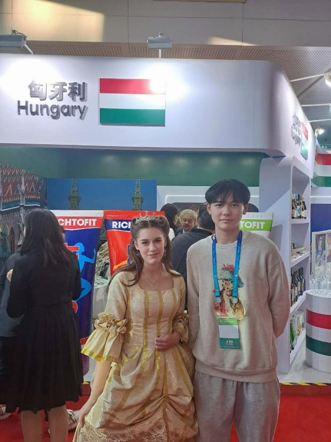 北京外国语大学为匈牙利馆提供了大力支持,匈牙利语专业学生贺景成担任志愿者,匈牙利留学生汤楚文扮演了“茜茜公主”,北外匈牙利语专业学生吴昀珂、朱束文灼担任嘉宾剪彩礼仪,协助剪彩工作顺利完成。