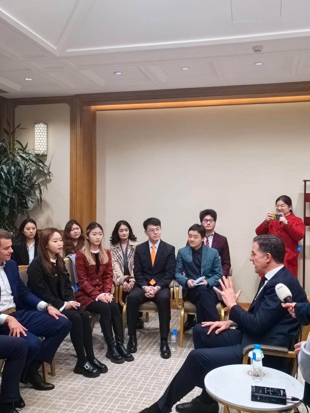 2024年3月27日,必赢bwin线路检测中心荷兰语专业师生应荷兰王国驻中国大使馆邀请,参加与荷兰首相马克·吕特的交流会。