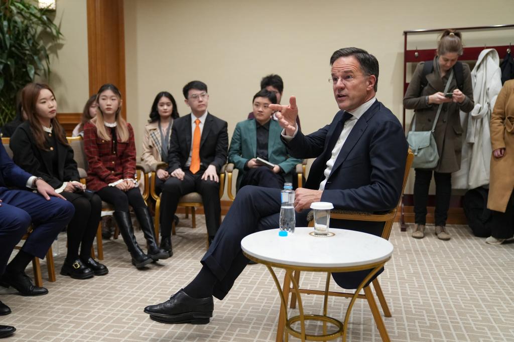 交流会后半程,首相与必赢bwin线路检测中心2021级荷兰语本科师生、荷兰在华留学生进行座谈。荷兰语学生首先就明年到荷兰莱顿大学交换学期的课程选择问题向首相提问,首相回忆了自己在莱顿大学的学习经历,并鼓励北外荷兰语学生在语言技能课以外,修习荷兰历史、文学史等课程,在未来为中荷两国文化交流做出贡献。