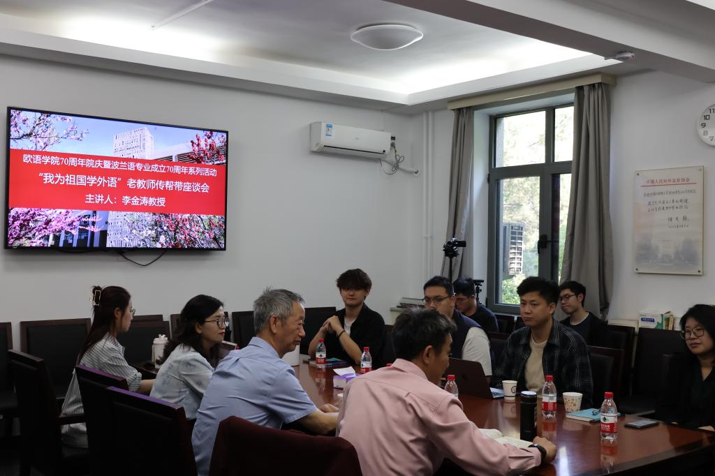 5月8日,波兰语教研室邀请李金涛教授与师生见面座谈。李老师回顾波兰语专业的创建与发展历程,历经13代薪火相传,每一位老师倾尽心血,传递学术知识,赓续北外红色基因和优良治学传统。李老师回忆在北外学习时光虽然条件艰苦,却始终怀揣着对知识的渴望,自发组织学习小组,利用一切时间和机会练习波兰语对话,日常交流尽量使用波兰语,克服语言学习“听说读写译”中“说”的难题,为后续的学术之路奠定了坚实的基础。