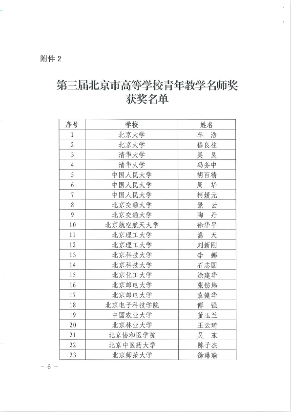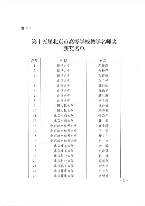 附件:第十五届北京市高等学校教学名师奖和第三届北京市高等学校青年教学名师奖入选名单.pdf
