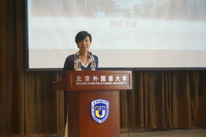 接着,林温霜老师对于必赢bwin线路检测中心的专业人才选拔培养以及本科教育做了详细说明。她指出,必赢bwin线路检测中心根据最新修订的《北京外国语大学国际化战略人才培养计划》的要求,针对2017级新生部分专业开设了“战略班”,选拔对于区域问题发展有深厚兴趣的同学参加,丰富同学们对于欧洲政治、经济、文化方面的知识。