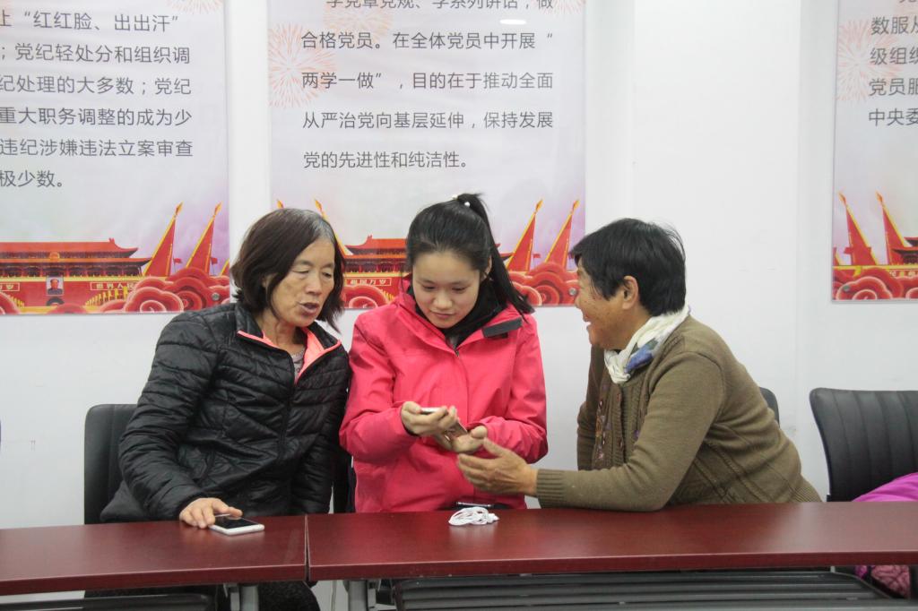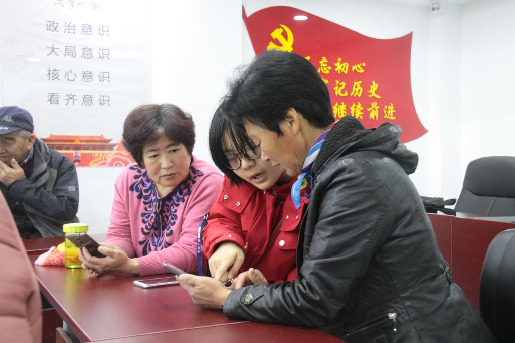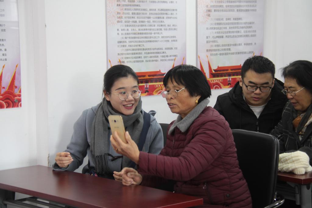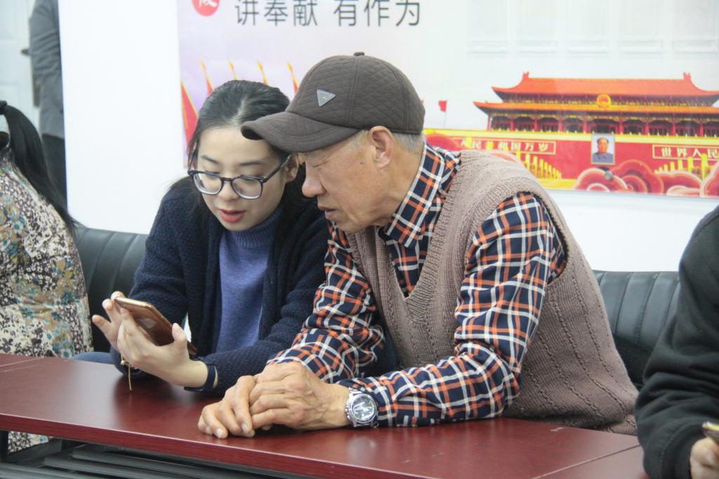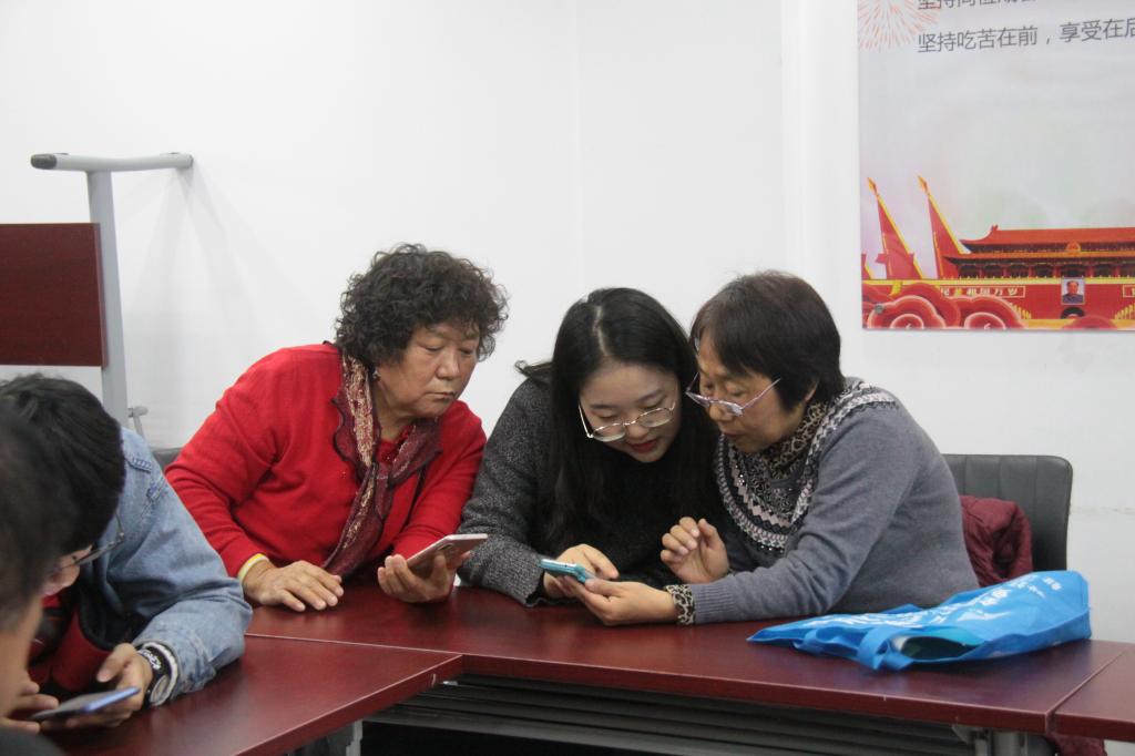 短暂的相互介绍之后,爷爷奶奶们拿出自己的手机,向志愿者们咨询“如何指纹解锁”、“如何使用导航”、“如何用蓝牙传输广场舞伴奏”等一个个日常生活中遇到的小小难题。在同学们的悉心讲解下,老人们频频点头,认真学习,甚至拿笔记本仔细地记下每一个步骤,脸上绽开满意的微笑。随后,讲解“课堂”渐渐地转化为亲切的聊天“唠家常”,在解决手机使用技术问题的同时,同学们与爷爷奶奶们的距离慢慢拉近,感情也不断加深。