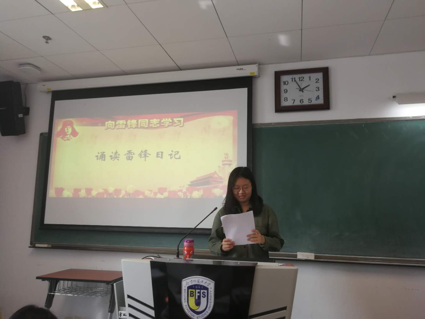 如2017级匈牙利语班团支书组织全体团支部成员诵读《雷锋日记》,同学们积极准备材料,表现出极高的参与热情。主题活动上,同学们纷纷上台朗读《雷锋日记》中的选段,探寻雷锋同志的足迹。还有同学在朗读之后分享关于雷锋的小故事和发生在自己身边的一些温暖的小故事,呼吁大家向雷锋学习,同时也要善于发现生活中的“活雷锋”。