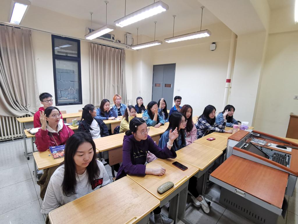 17级保加利亚语班同学观看节目时聚精会神,有的同学还做了笔记。在节目结束后的主题班会上,各位同学进行了一场小型讨论会。同学们踊跃发言,有的同学就节目内容阐述了自己的看法与感想,有的同学回忆起了自己的中学老师,还有的同学想到了现在正给我们上课、精心栽培我们的大学老师。