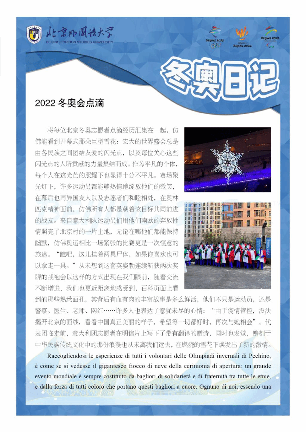 欧语人在冬奥 | 北京冬奥村志愿者 意大利语谭钰薇:2022冬奥会点滴